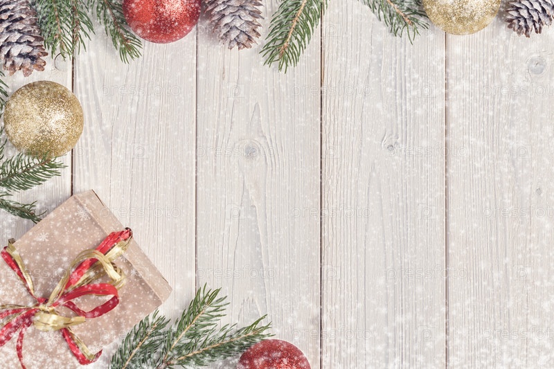 Рождественские подарочные коробки и елка на деревянном фоне