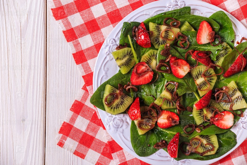 Салат с клубникой, киви, шпинатом