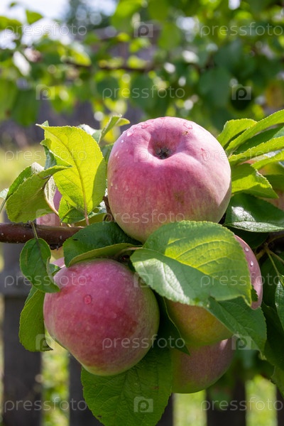 Яблоня, насыщенная спелыми красными сочными вкусными яблоками