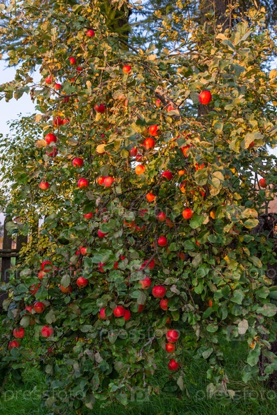 Яблоня, насыщенная спелыми красными сочными вкусными яблоками