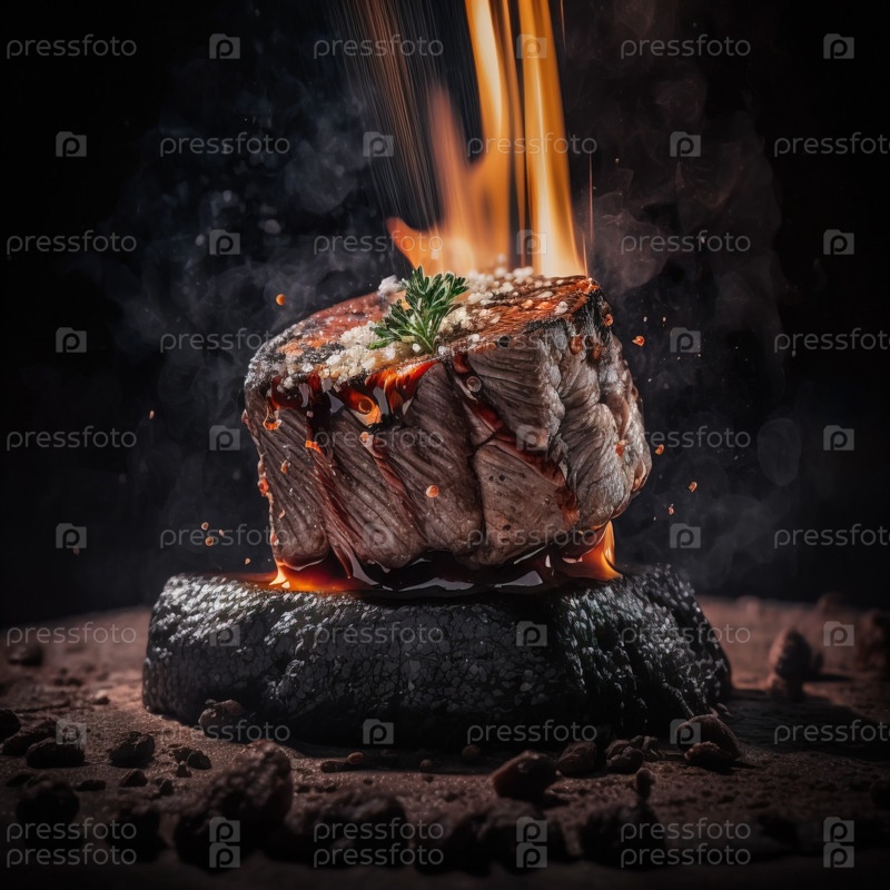 Филе говядины породы Ангус, приготовленное на гриле с брокколи и спаржей. Генеративный ИИ