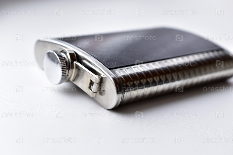Железная фляжка для воды или алкоголя на белом фоне
