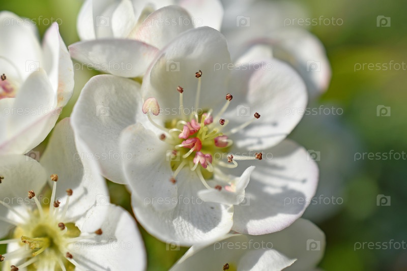Красивые белые и розовые цветы яблока и груши крупным планом