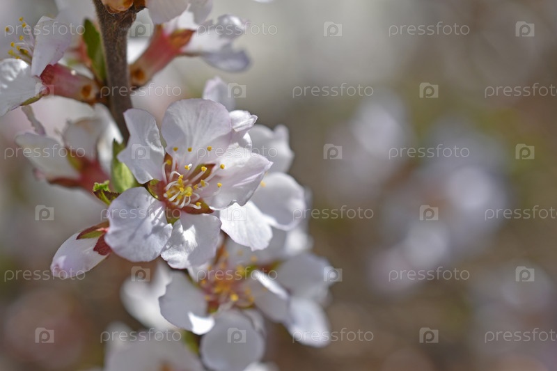 Красивые белые вишневые цветы в саду днем крупным планом