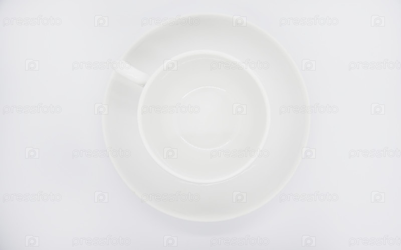 Чайная пара на белом фоне. Фарфоровый сервиз крупным планом. Чайная чашка и блюдце