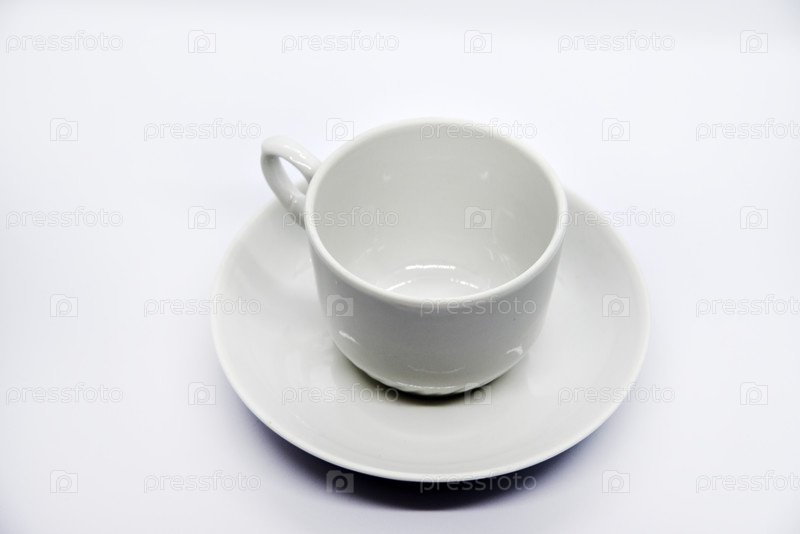 Чайная пара на белом фоне. Фарфоровый сервиз крупным планом. Чайная чашка и блюдце