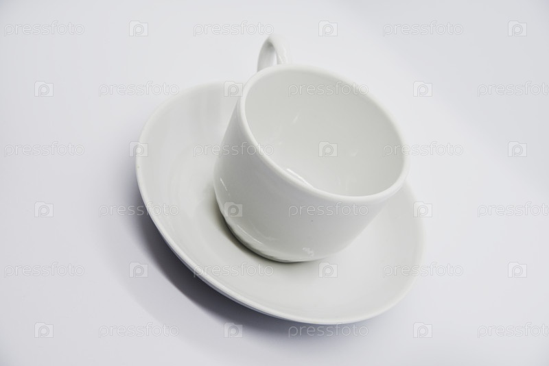 Чайная пара на белом фоне. Фарфоровый сервиз крупным планом. Чайная чашка и блюдце