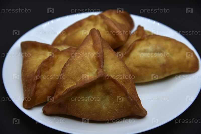Мясные пироги на белой тарелке. Беляши. Вкусные мясные пироги на черном фоне