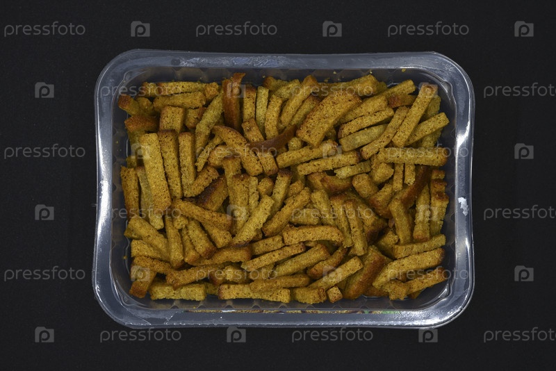 Панировочные сухари в коробке. Хлеб закуска к пиву. Подсушенный испеченный хлеб