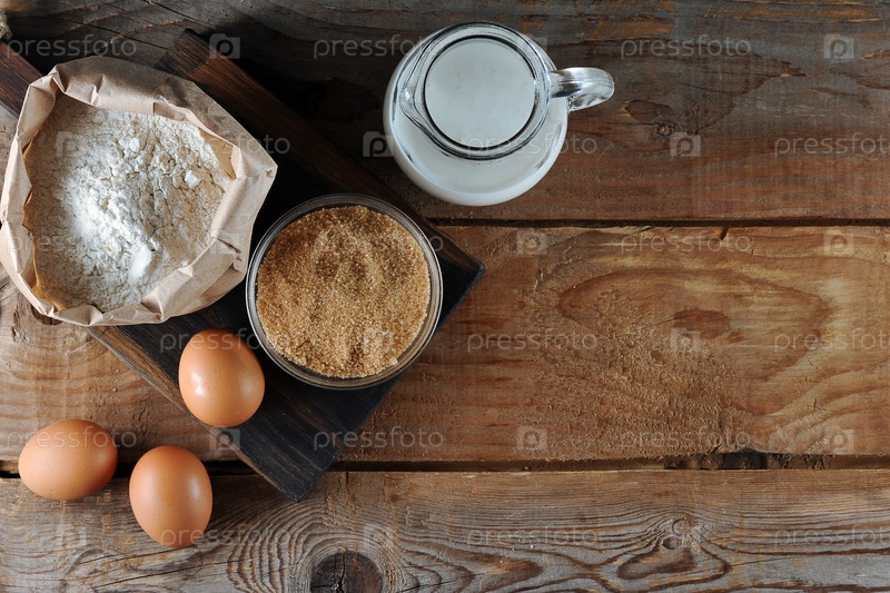 Ингредиенты для теста: мука, сахар, яйца и молоко