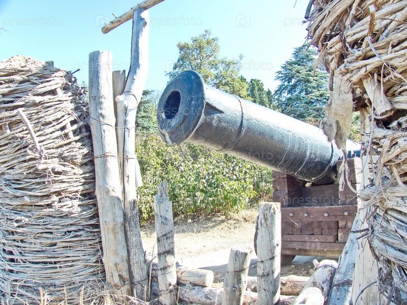 Оборонительное укрепление, батарея №44 Житкова, мемориальный комплекс Малахов курган. Оружие середины 19 века. Севастополь, Россия, сентябрь 2021