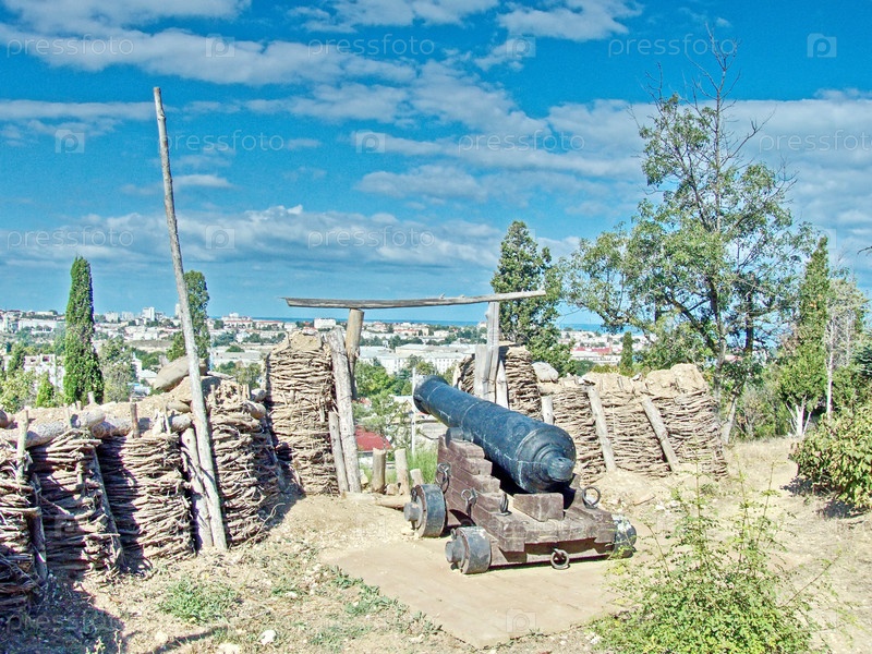 Оборонительное укрепление, батарея №44 Житкова, мемориальный комплекс Малахов курган. Оружие середины 19 века. Севастополь, Россия, сентябрь 2021