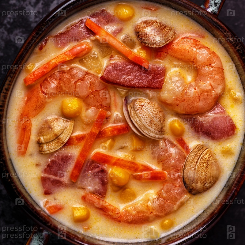 Домашняя похлебка из моллюсков с креветками