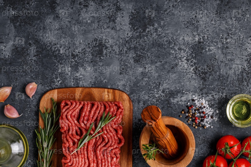 Фарш со специями, зеленью, оливковым маслом