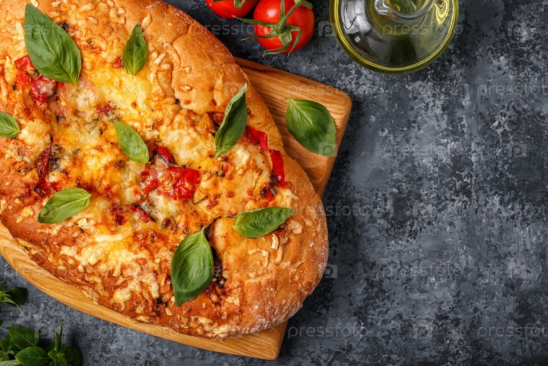 Фокачча с помидорами, зеленью и сыром