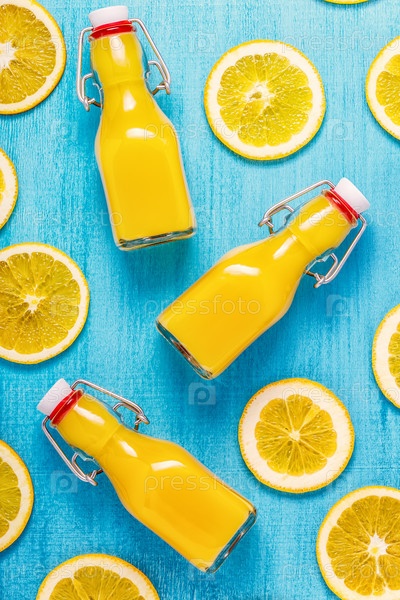 Апельсиновый сок на синем фоне