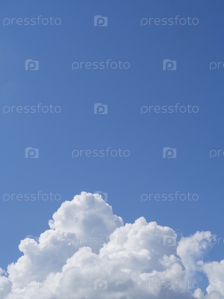 Фон летнего неба, белое облако на ясном голубом небе, вертикальное фото