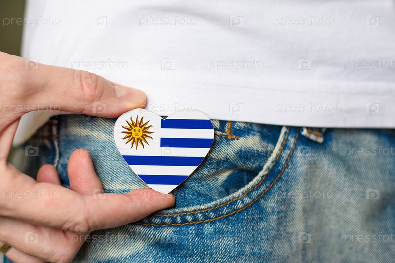 Уругвайский! Деревянный значок с флагом Уругвая в форме сердца в мужской руке