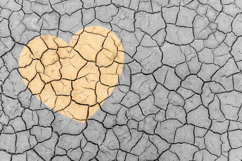Концепция защиты мира от глобального потепления. Знак сердца на сухой потрескавшейся земле