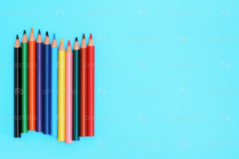 Цветные карандаши. Набор цветных карандашей, изолированных на синем фоне