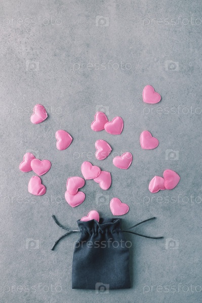 Подарочный фон с романтическими розовыми сердечками. Плоская планировка с копией пространства