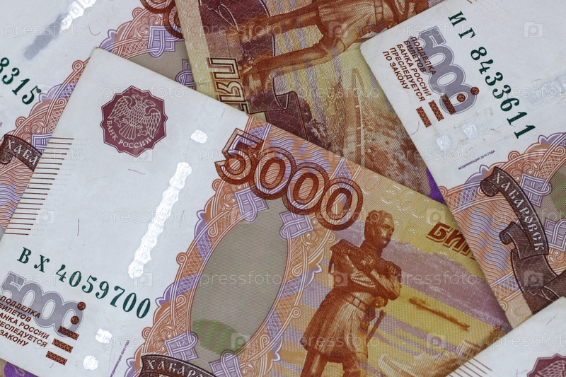 Много русских денег. банкноты номиналом пять тысяч. банкноты крупным планом