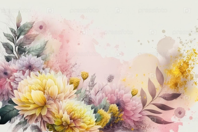 Иллюстрации акварели пастельные цветы, на белом фоне, весенняя концепция, Generative