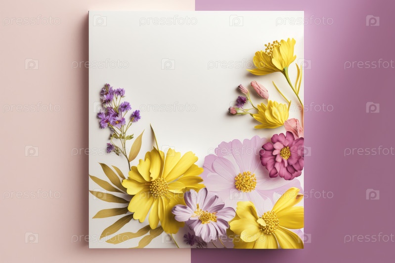 Картина, состоящая из цветов пастельных тонов на двухцветном фоне, весенняя концепция, Generative