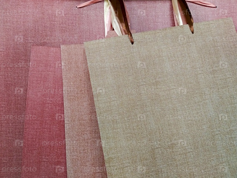Разноцветная оберточная бумага на прилавке магазина, разноцветные бумажные пакеты с лентами
