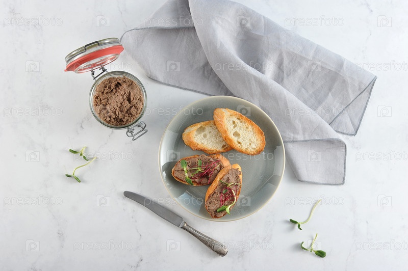 Домашний паштет в стеклянной банке и поджаренный тост