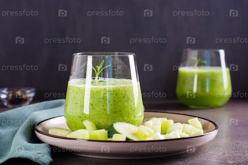Смузи из свежего зеленого огурца и сельдерея в стакане для вегетарианской диеты