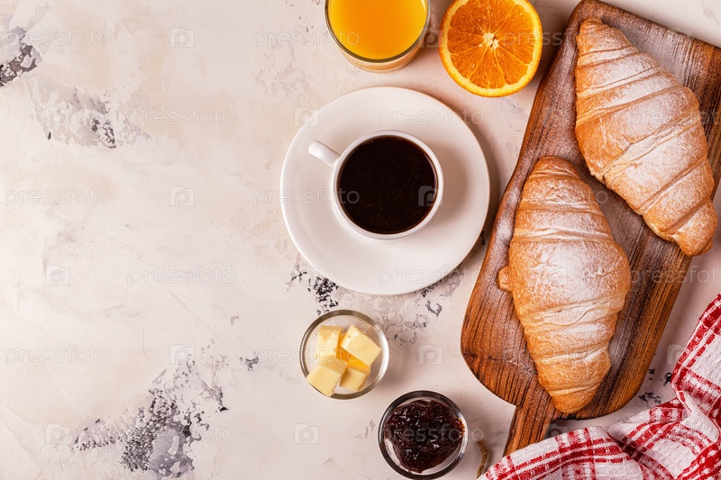 Вкусный завтрак со свежими круассанами