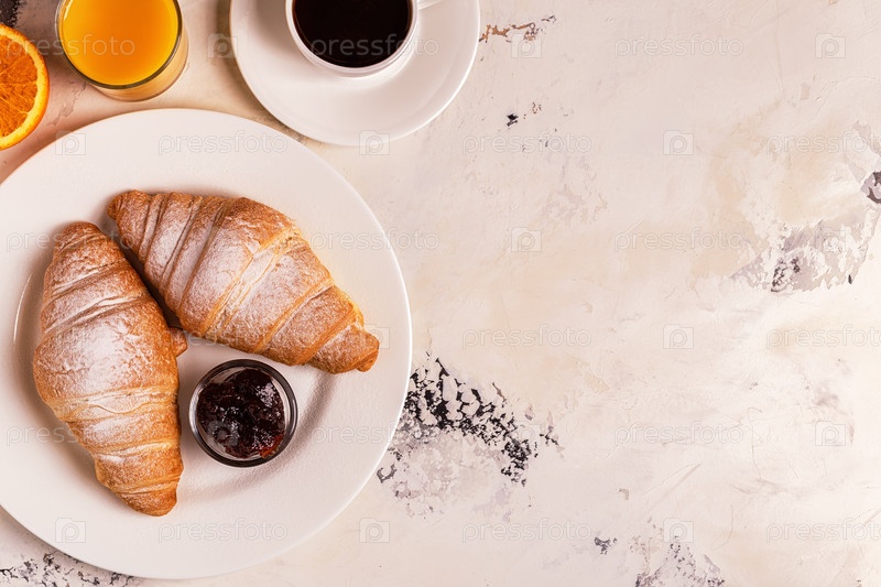 Вкусный завтрак со свежими круассанами