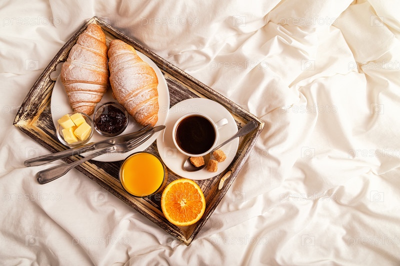 Завтрак в постель с кофе и круассанами