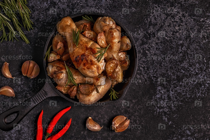 Жареные куриные ножки с розмарином, чесноком и чили