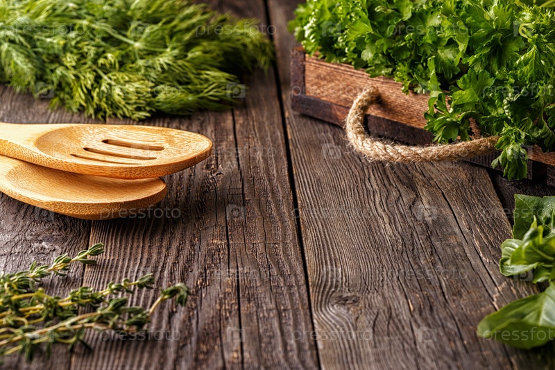 Овощи, травы, специи фон. Выборочный фокус