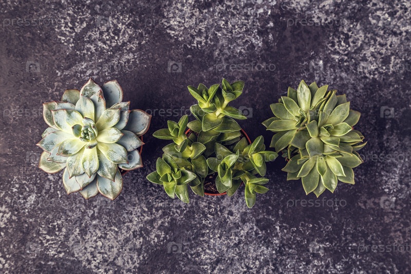 Зеленые сочные растения на темном фоне