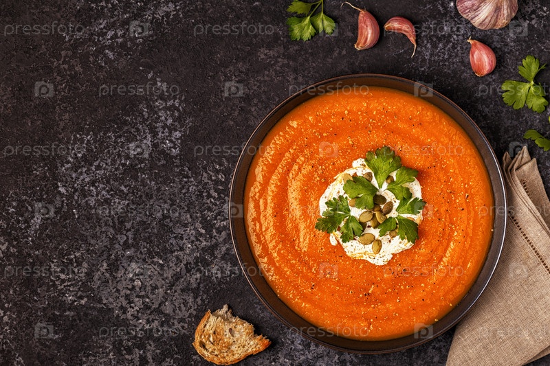 Тыквенно-морковный суп со сливками, семечками и петрушкой