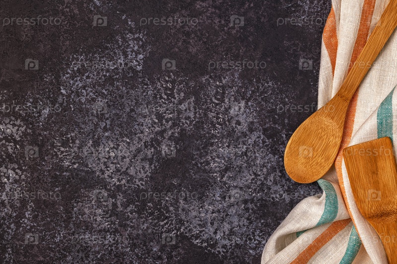 Кухонный фон с полотенцем и кухонными принадлежностями