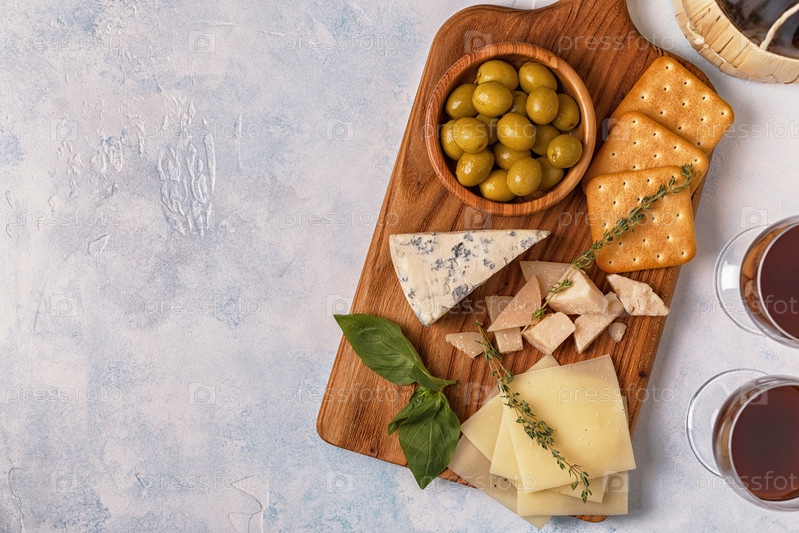 Сырный крекер оливки вино
