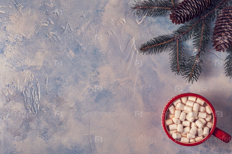 Рождественский фон с горячим какао и зефиром