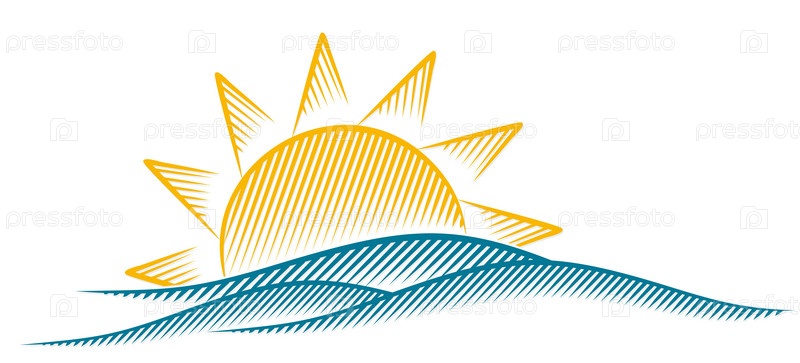 Рассвет солнца с голубой волной