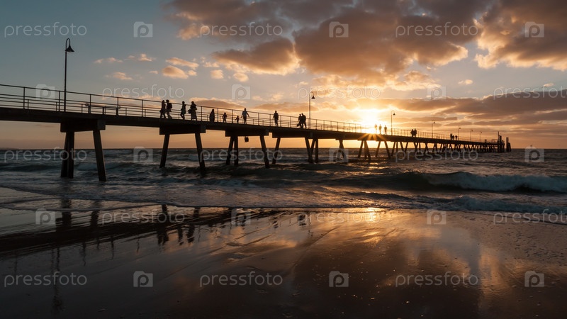 Силуэт пристани Гленелг на закате, Южная Австралия, Аделаида