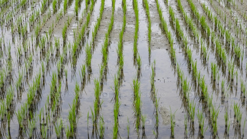 Азиатские зеленые рисовые поля, крупным планом изображение рисовых полей