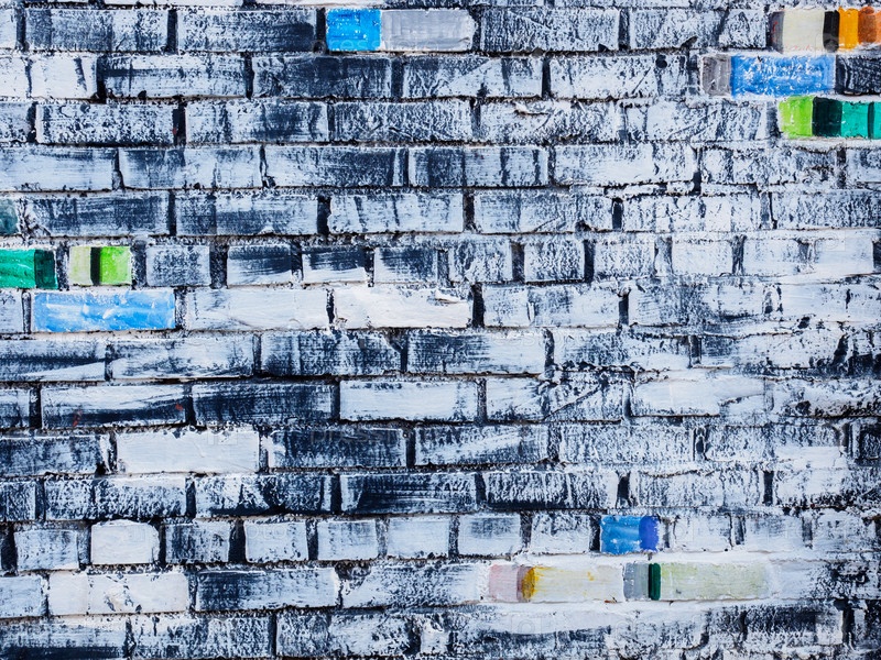 Грубая белая кирпичная стена с цветным кирпичом, текстурированный фон