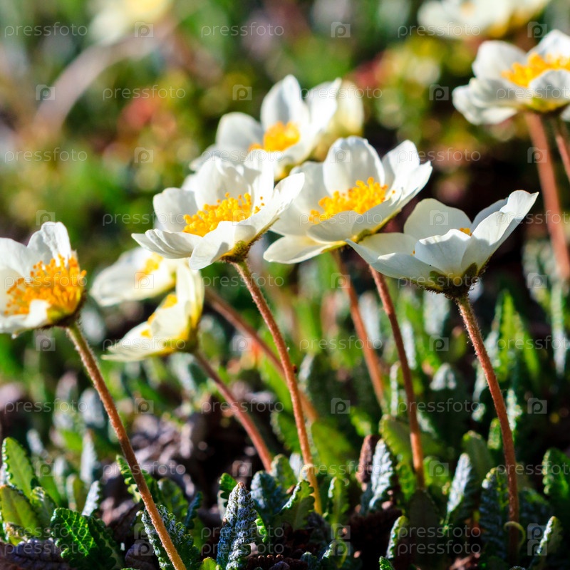 Белые нежные цветки ранней весной. Полуостров Камчатка, Россия. Крупный план изображения
