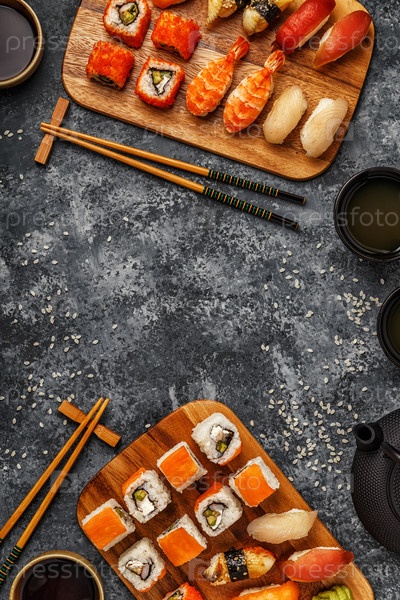 Суши-сет: суши и суши-роллы на деревянной тарелке
