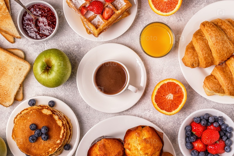 Вкусный завтрак на светлом столе