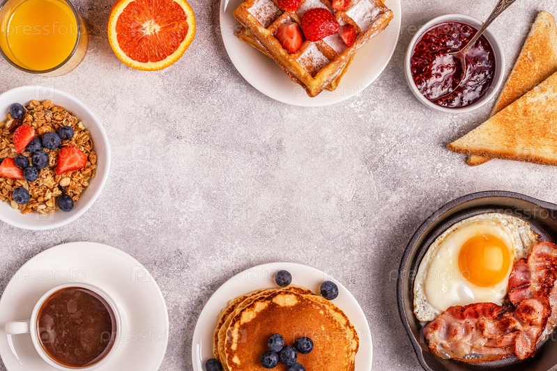 Вкусный завтрак на светлом столе