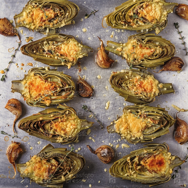 Артишоки, запеченные с сыром, чесноком и тимьяном